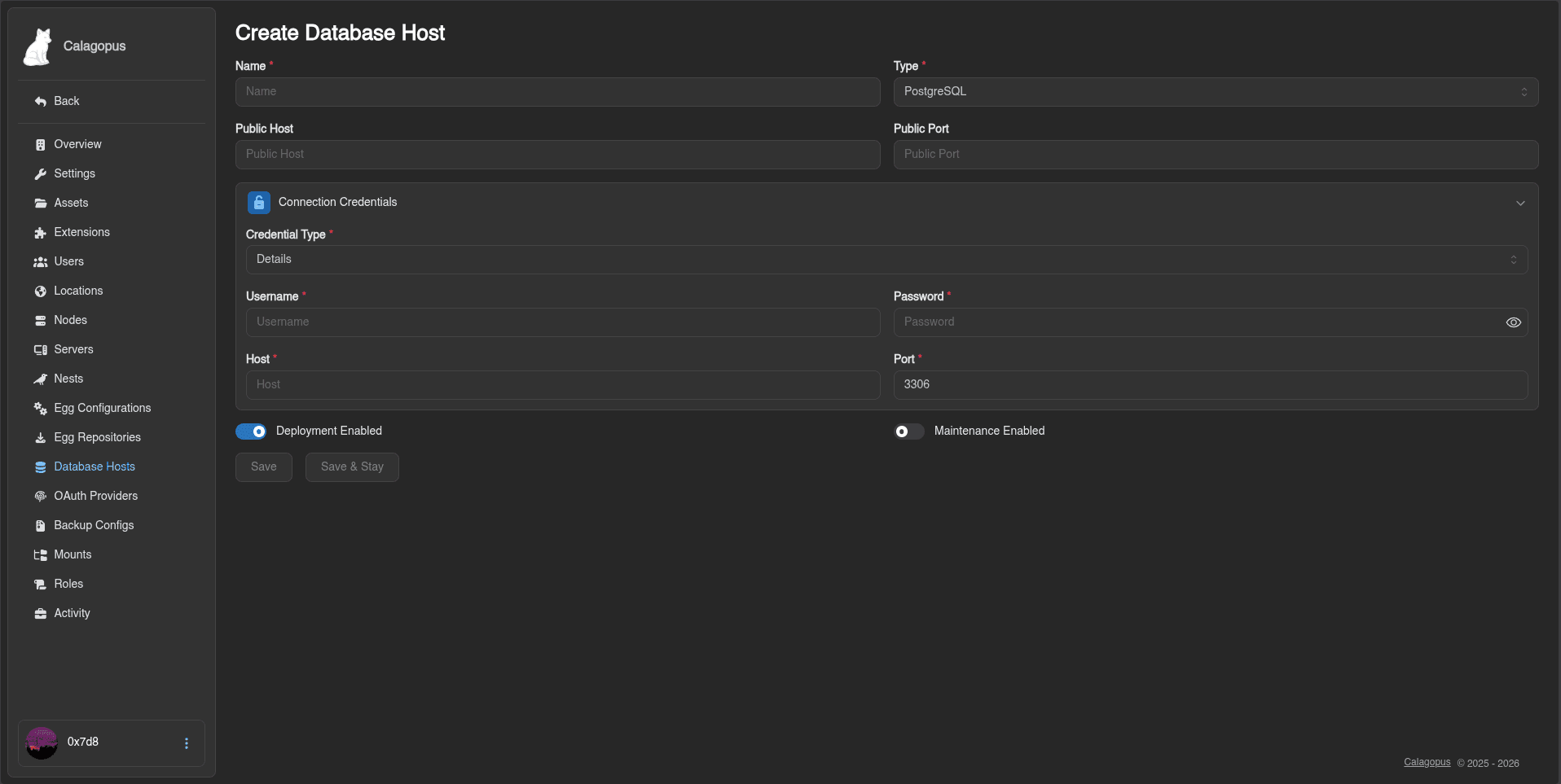 This guide explains how to install and configure a PostgreSQL database server to use as a database host in the Calagopus Panel. Once set up, your users will be able to create databases for their game servers directly from the panel.
